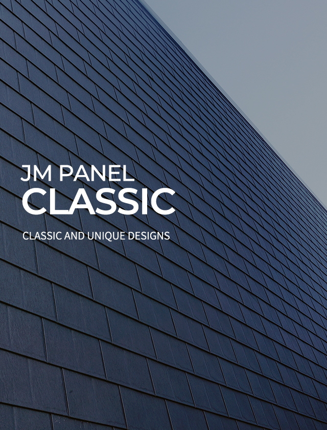 PRODUCTJM Panel Classic, Europe is a new concept panel designed to be simply fixed and installed with pieces with a patented no-clip system. It is an AL (aluminum) product that is excellent for corrosion prevention and does not require a separate structural reinforcement work due to the light weight of the product.